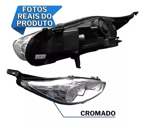 Farol Dianteiro Ford New Fiesta Hatch Sedan 2013 a 2016 Máscara Cromada