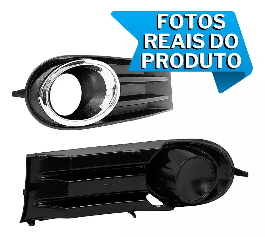 Fabricada em plástico ABS automotivo de alta resistência, possui acabamento com aro cromado e furo para milha, garantindo visual moderno e esportivo ao veículo.