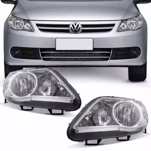 Kit Farol Duplo Cromado H1 H7 e Lanternas Traseiras Fumê Saveiro G5 2009 a 2012
