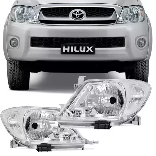 Kit com 2 faróis dianteiros com máscara cromada e 2 lanternas traseiras bicolor cristal, compatível com Hilux SR e SRV de 2005 a 2015. Produto novo, com encaixe sob medida e acabamento de qualidade, ideal para quem busca segurança e visual renovado sem adaptações.