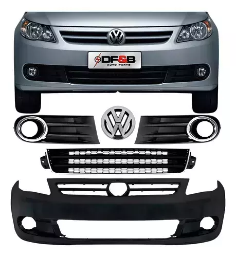 Kit Parachoque com Grades e Molduras Milha Aro Cromado Emblema Gol Voyage G5 2009 a 2012